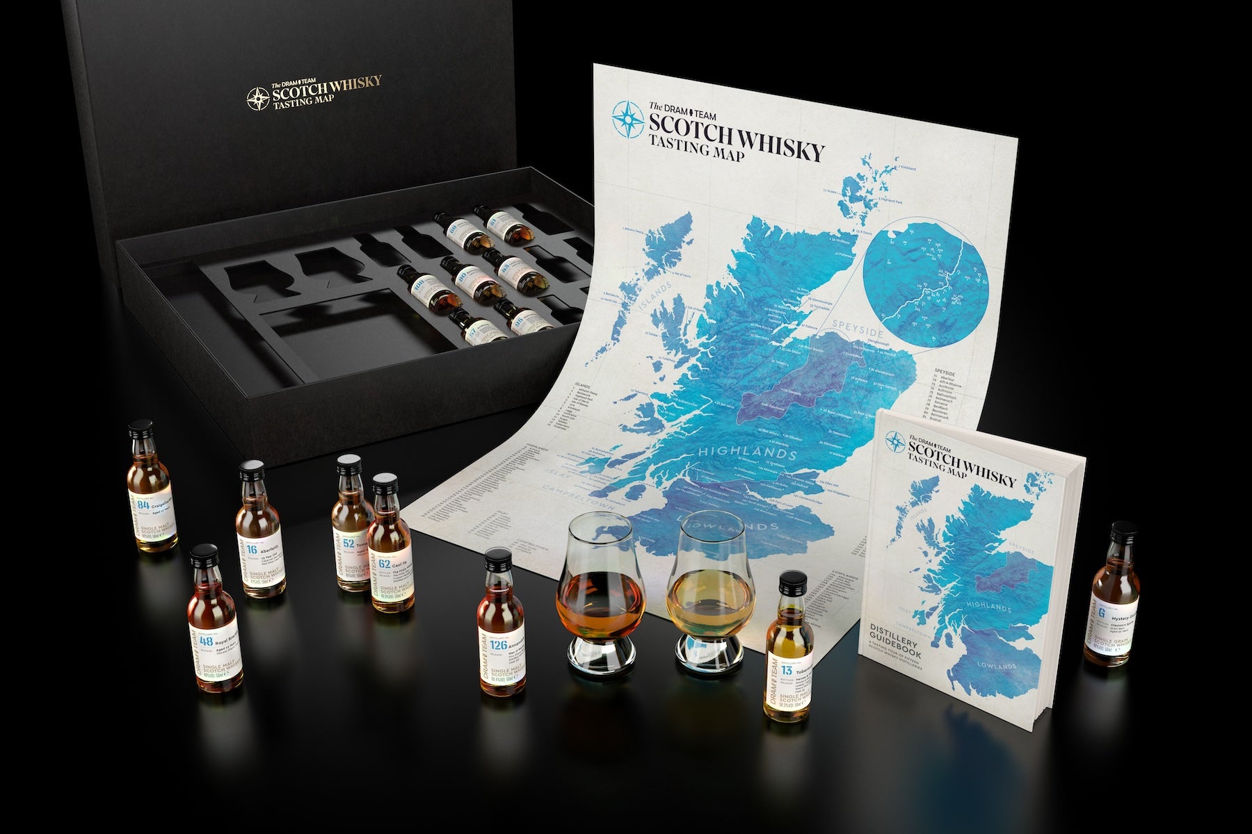 Indulge in the ultimate tasting tour of Scotland's famous whisky distilleries. The Scotch Whisky Tasting Map is a luxury collection of fifteen incredible drams guaranteed to surprise and delight any Scotch whisky lover.